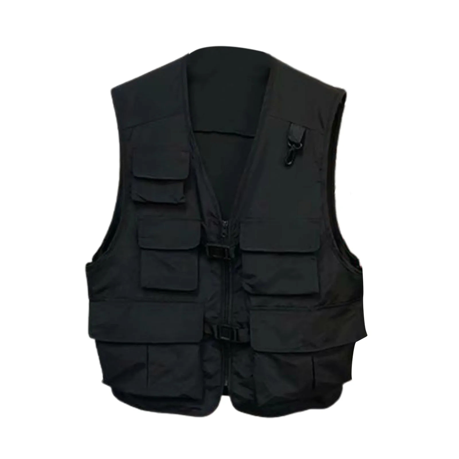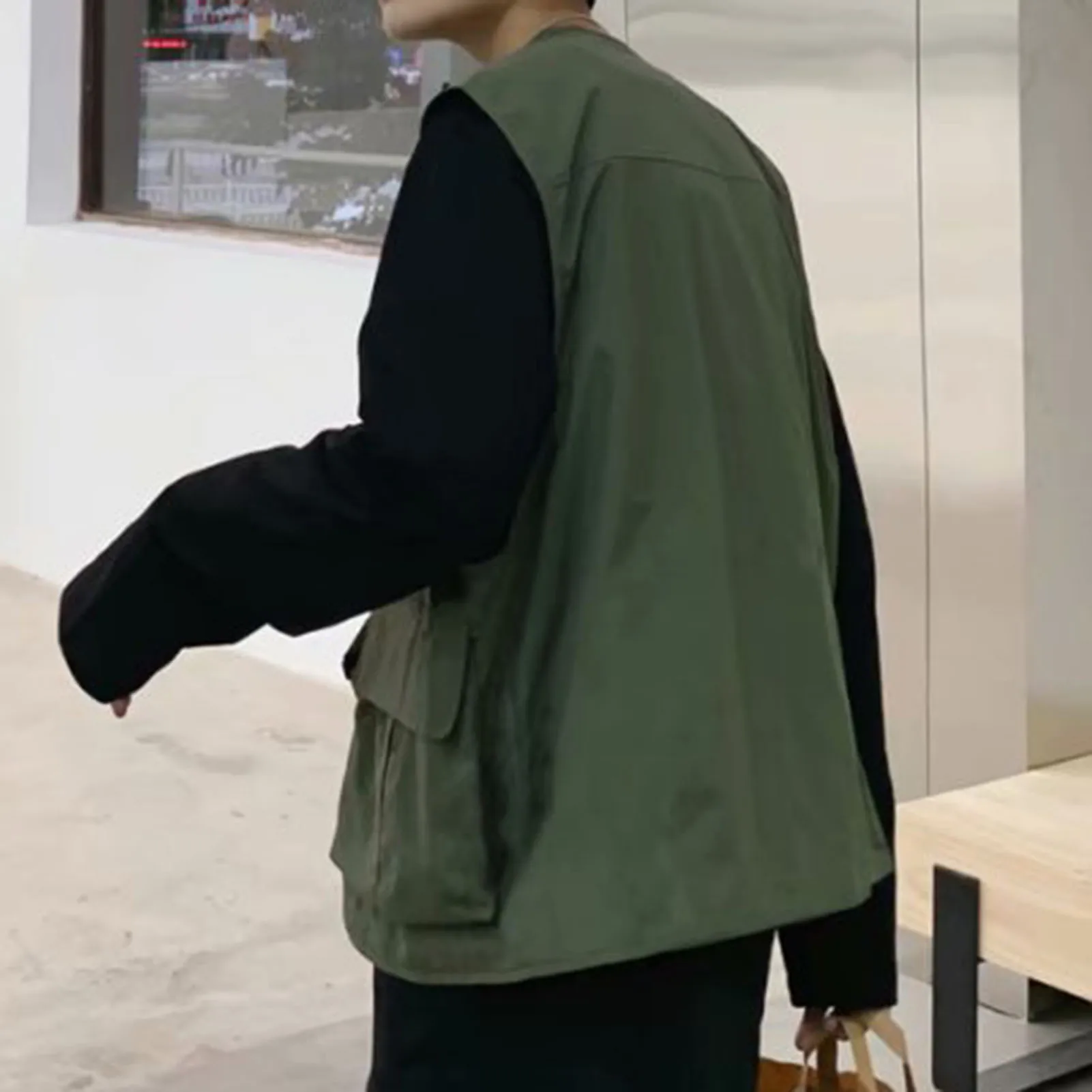 الرجال سترة كاجوال معطف الخامس الرقبة بلا أكمام البضائع سترة بلون جيوب متعددة سستة مشبك صدرية ملابس خارجية للرجال الملابس