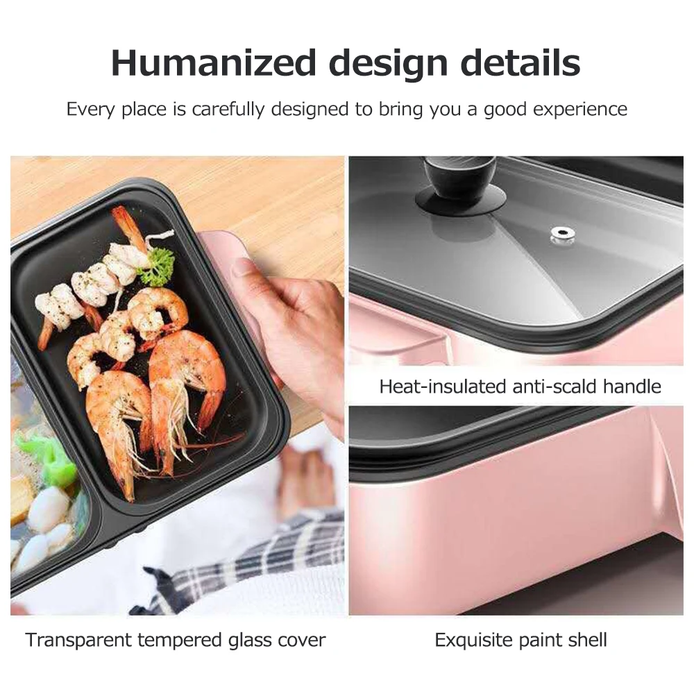 4. تنتج هذه الشواية الكهربائية دخانًا أقل من الشواء التقليدي ، يمكنك الاستمتاع بإناء ساخن وشواء بطريقة صحية ، والاستمتاع بالطعام والحفاظ على صحته في نفس الوقت ، هذه الشواية هي اختيارك الجيد للغاية.