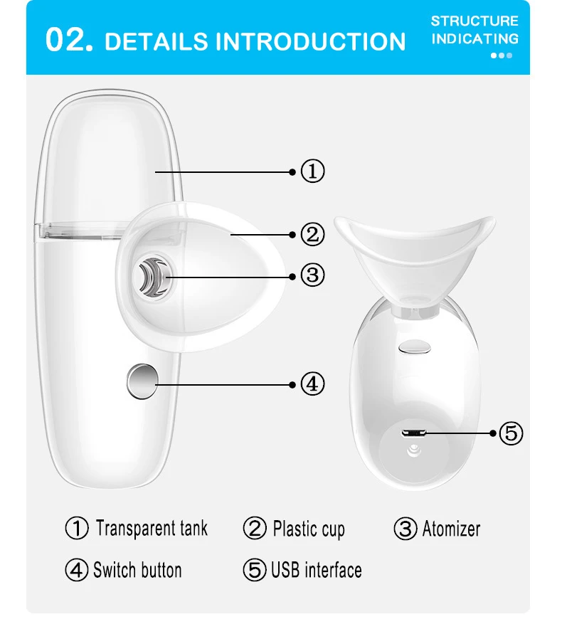 • تصميم محمول:الحجم الصغير لترطيب العين يجعلها خفيفة الوزن وسهلة الحمل ، مثالية للسفر أو الاستخدام في العمل.